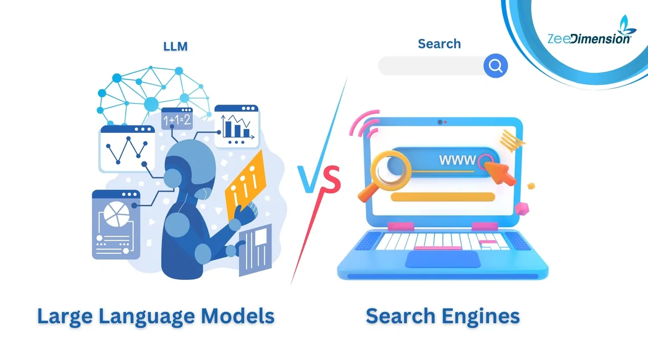 Both search engines and large language models (LLMs) help users find information, but in different ways. Search engines scan the web and return relevant pages based on user queries, while LLMs generate responses using patterns learned from vast amounts of pre-existing data.